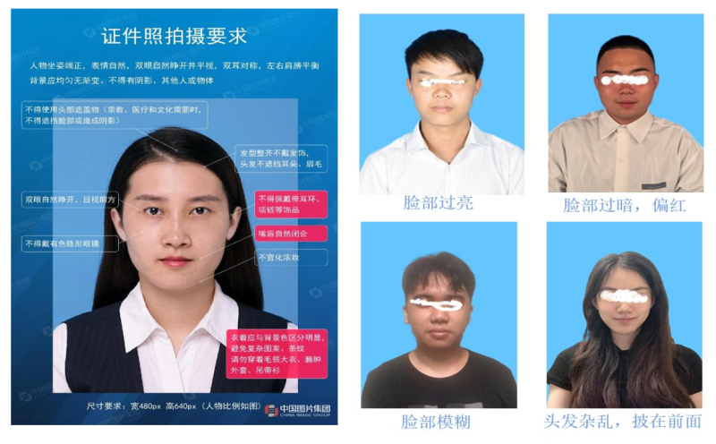 (一)因照片清晰度、拍摄角度、发型、妆容均会影响审核结果,采集照片时严禁使用美颜、磨皮、修图等功能,拍照时必须无水印。