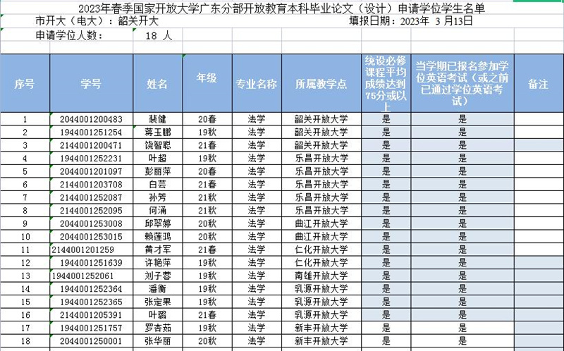 根据省校的统一部署和安排,我校(含县大)2023春季学期国开本科毕业论文答辩工作(需申请学位的)安排在2023513日进行。为保障本次答辩工作的顺利进行,结合当前疫情防控所需,我校决定如下安排,要求市校本部老师及同学、所辖相关县级开高度重视,严格遵照工作安排执行。