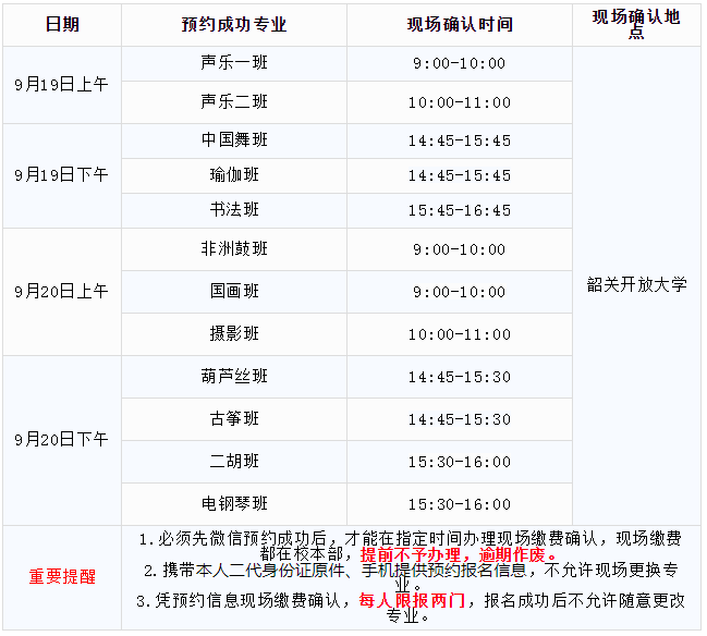 微信预约成功后,请根据预约成功专业,按照以下时间段到学校(校本部)现场报名缴费确认