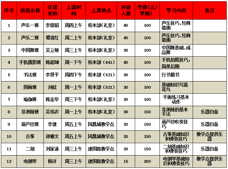 (具体上课地点以课程安排为准)