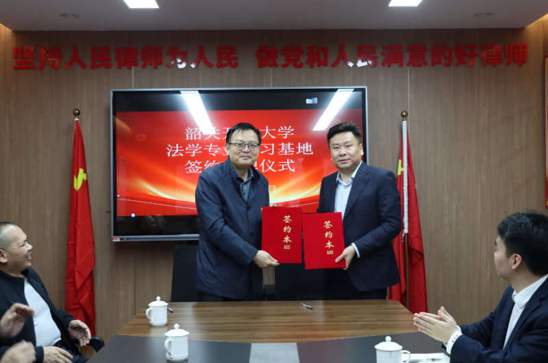 双方就开展合作共建实习基地达成了共识,签订了合作协议书,并进行韶关开放大学法学专业实习基地揭牌。