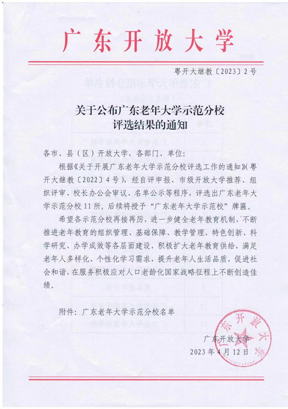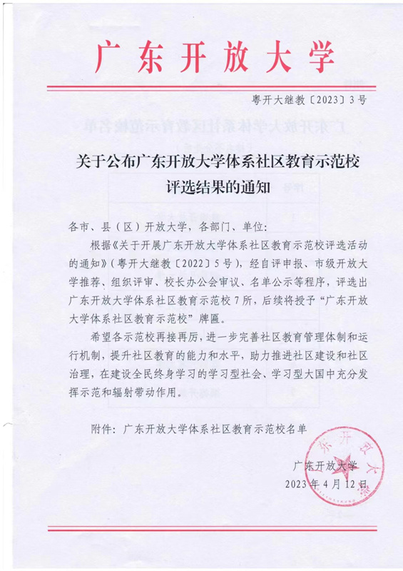 广东开放大学体系社区教育示范校、老年大学示范校评选结果日前出炉,韶关开放大学获评广东开放大学体系社区教育示范校和广东开放大学体系老年大学示范校。