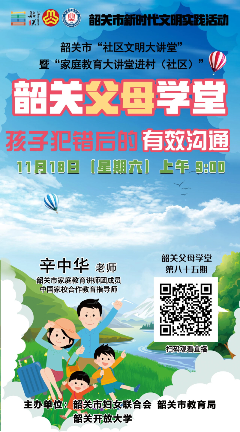 每个孩子在成长过程中都会经历许许多多的事,有的做得好,有的不尽如人意。假如我们的孩子做错了事,家长应该如何处理呢?由辛中华老师带来的《孩子犯错后的有效沟通》直播课,让家长们更了解青少年心理,掌握亲子沟通技巧,形成良好的亲子关系,促进孩子健康快乐成长。