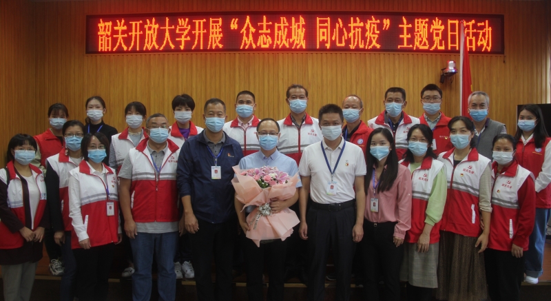 为深入贯彻落实习近平总书记在全国抗击新冠肺炎疫情表彰大会上的讲话精神和党中央的有关决策部署,为致敬所有“逆行”人,传递防疫信心,10月17日上午9点,韶关开放大学与群康社区在学校综合楼一楼开展“众志成城 同心抗疫”主题党日活动,共25人参加。