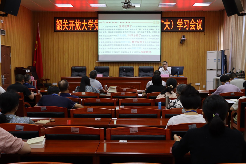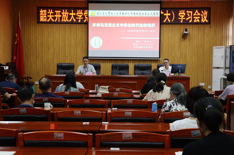 2023年6月21日下午,我校在综合楼一楼会议室召开党委理论学习中心组(扩大)学习会议,学校全体教职工参加了此次会议,会议由校党委委员、副校长邓纯聪主持。