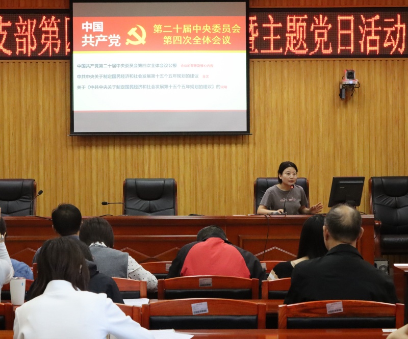 活动首先由思政课团队教师张丽红同志以“向着中国式现代化的宏伟目标阔步前行、接续奋进”为主题,开展了深入解读党的二十届四中全会精神的微党课,通过详实数据和视频资料,全面回顾了“十四五”时期我国在经济建设、科技创新、民生改善等方面取得的重大成就,强调“十五五”时期是基本实现社会主义现代化的关键五年,号召全体党员同志将全会精神转化为基层实践,通过学深悟透和党建引领,确保各项部署落地见效,共同谱写中国式现代化新篇章。