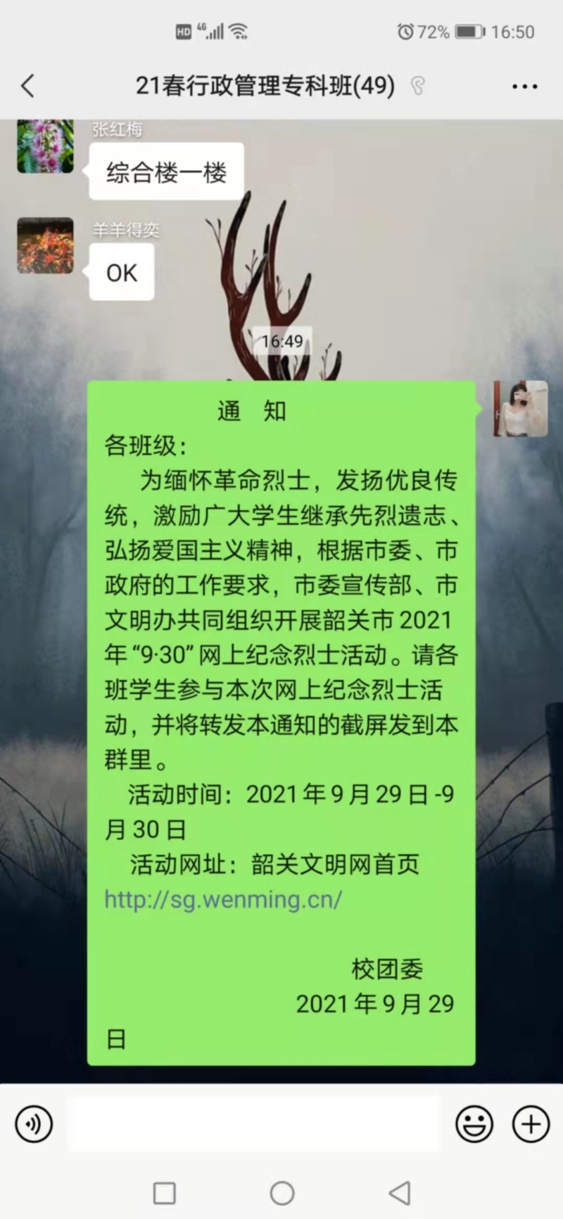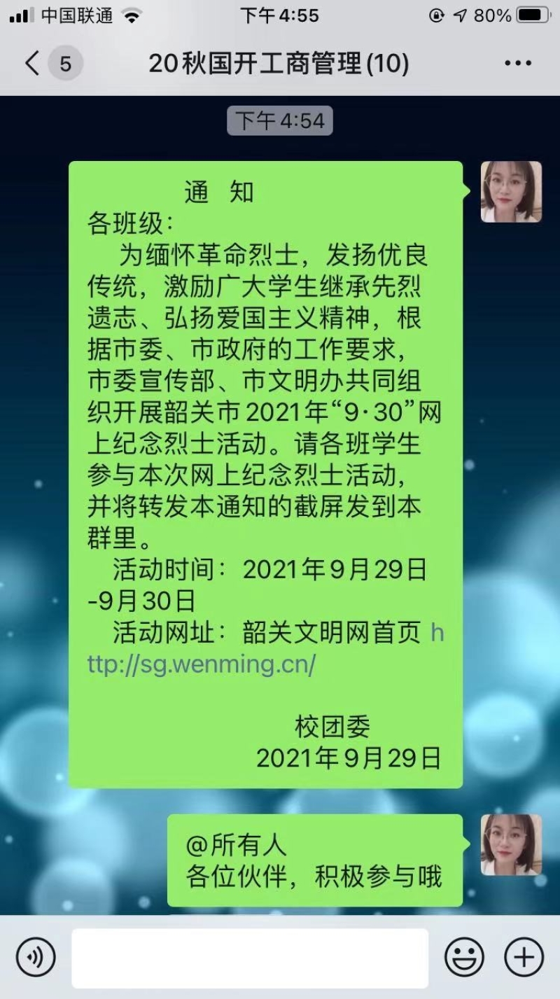 韶关开放大学开展“9·30”网上纪念烈士活动