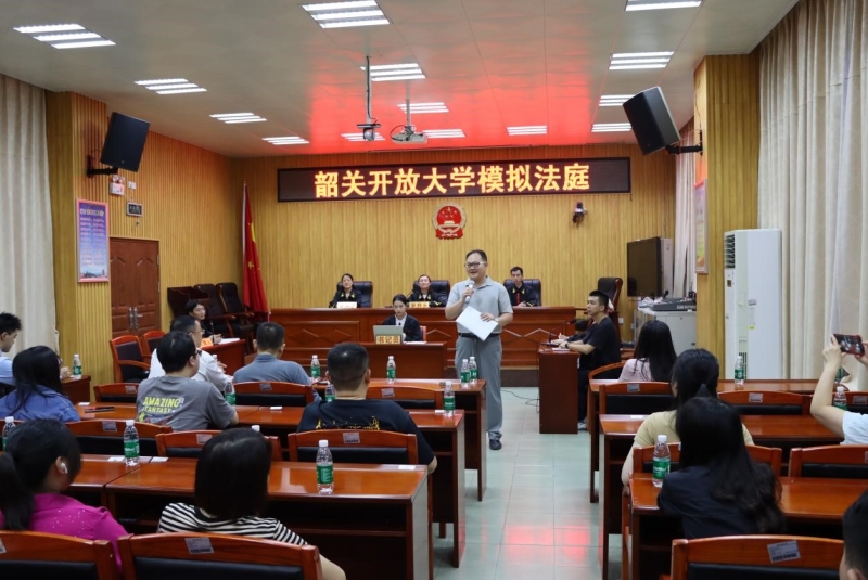 2024年6月 7日晚19:30,韶关开放大学法学专业模拟法庭实践活动在学校综合楼会议室举行。校党委书记、校长钟东,党委委员、副校长张朝平,广东能法律师事务所刘照东律师,以及部分教师及学生代表出席观摩了本次活动。