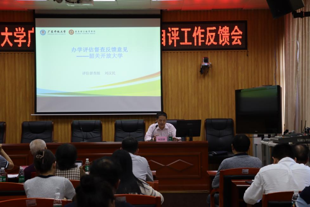 2024年4月1日-2日,国家开放大学广东分部办学评估督查小组领导刘汉民、赖粵东、袁立梅、叶铭涛来我校实地督查。4月1日上午,在综合楼431会议室召开国家开放大学广东分部体系办学评估自评工作汇报会,办学评估督查小组领导、学校领导班子成员和各一级指标负责人参加了会议?;嵋樯系澄?、副校长张朝平做自评工作汇报;党委书记、校长钟东对县(区)的自评工作遇到的难点进行了阐述;评估办各一级指标负责人就评估材料与督查组进行沟通交流,督查组领导对我校老师们提出的问题均耐心解答。